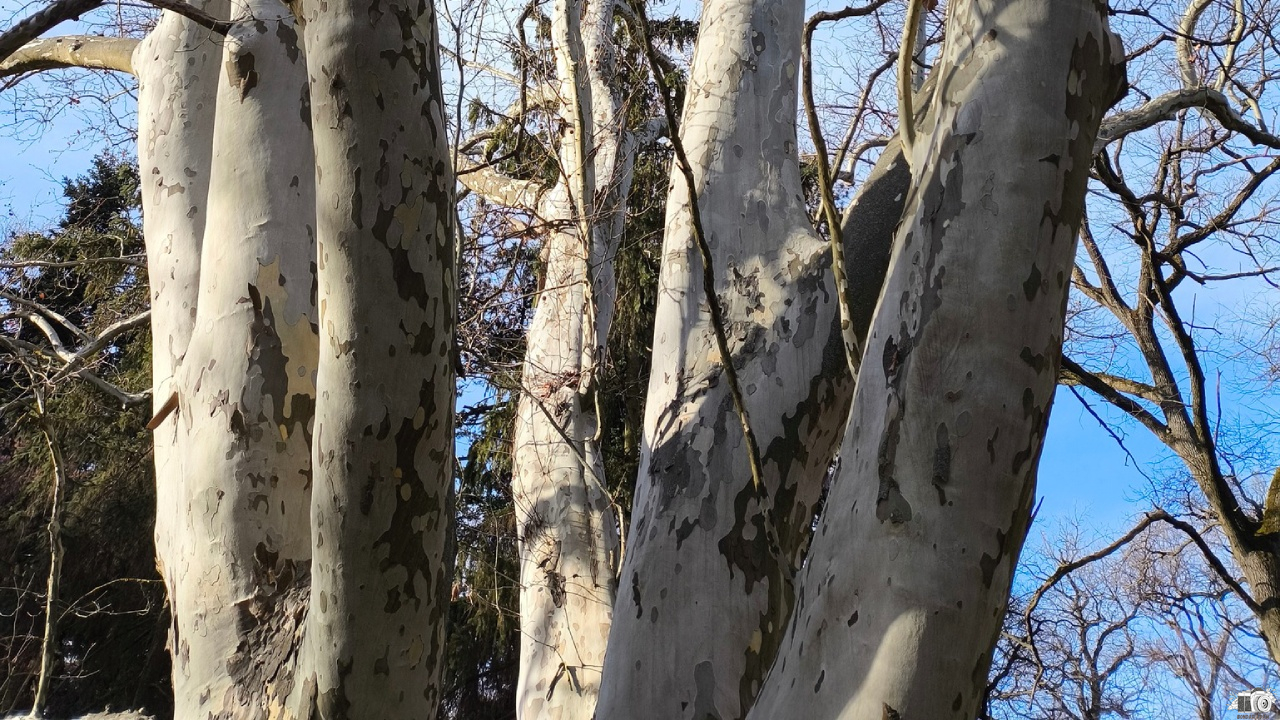 Az arborétum egyik legkülönlegesebb fája a híres „hármas” tölgy. Egyetlen hatalmas tőről három erőteljes törzs emelkedik az ég felé. Mintha három testvér kapaszkodna össze, mégis mindegyik a maga irányába tör. A többtörzsű növekedés ritka és látványos jelenség, különösen egy ilyen idős példánynál. A vastag, barázdált kéreg tapinthatóvá teszi az idő múlását, a törzsek találkozásánál pedig szinte érezni lehet az évszázadok erejét. Az ember önkéntelenül is megáll alatta, felnéz a koronába, és eltűnődik azon, hány tavaszt élt már túl, ez a fa itt a Tisza közelében. Február végén még csupaszon áll, ágain csak a rügyek ígérete látszik. De talán éppen így a legimpozánsabb: tisztán kirajzolódik a három törzs karaktere. Olyan pontja ez a sétának, ahol az ember kicsit hosszabban időzik – csendben, tisztelettel.